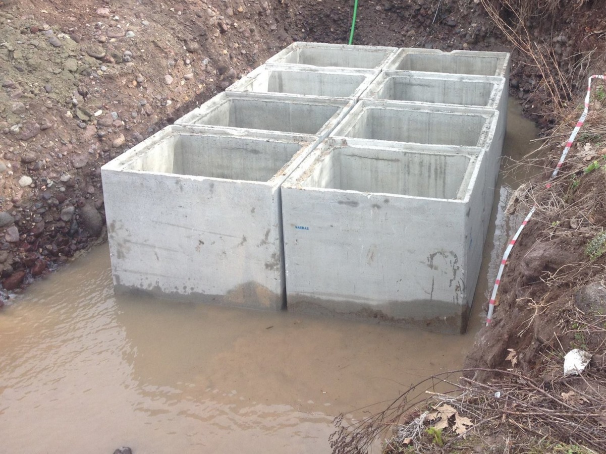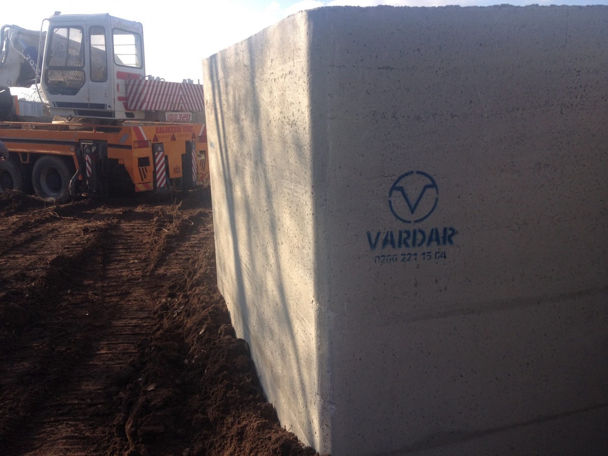 150 cm x 100cm ölçülerinde çift sıra demir donatılı 20 cm et kalınlığında prefabrik kutu menfez